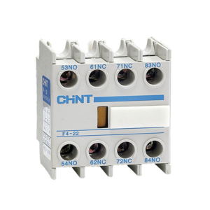 FeatureSpecificationModel / BrandCHINT F4‑22 auxiliary contact block Contact Configuration4 poles: 2 NO + 2 NCRated Thermal CurrentIth = 10 ARated Insulation VoltageUi = 690 VACUtilization CategoryAC‑15, rated 360 VAC, DC‑13 = 33 W (per IEC 60947‑5‑1) MountingSnap-on head on CJX2 (LC1‑D/NC1) contactors or DIN rail adapter StandardsIEC/EN 60947‑5‑1 compliant WeightApprox. 60 g Polarity4‑pole block, compatible with 4‑pole contactors ApplicationRemote signaling, interlocking, control extension for motor starters.