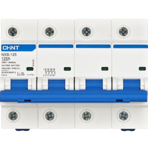 FeatureSpecificationBrandCHINT ModelNXB-125 Poles4P (Three-phase + Neutral) Rated Current (In)100A (C100) or 125A (C125)Tripping CurveType C (trips at 5–10 × In — for resistive & inductive loads) Rated Voltage (Ue)400/415V AC Frequency50/60 Hz Breaking Capacity (Icu)10 kA (at 400V AC) Service Breaking Capacity (Ics)7.5 kA Rated Insulation Voltage500 V Rated Impulse Voltage (Uimp)4 kV InstallationDIN Rail Mounting Operating Temperature–5 °C to +40 °C StandardsIEC/EN 60947-2 Mechanical Life20,000 operations Electrical Life4,000–6,000 operations depending on load (lower for >100A) ApplicationsMain circuit protection in residential, commercial & industrial power systems CertificationsCE, CB, ISO9001 DimensionsStandard modular format (~90 mm height, 70+ mm width for 4P)