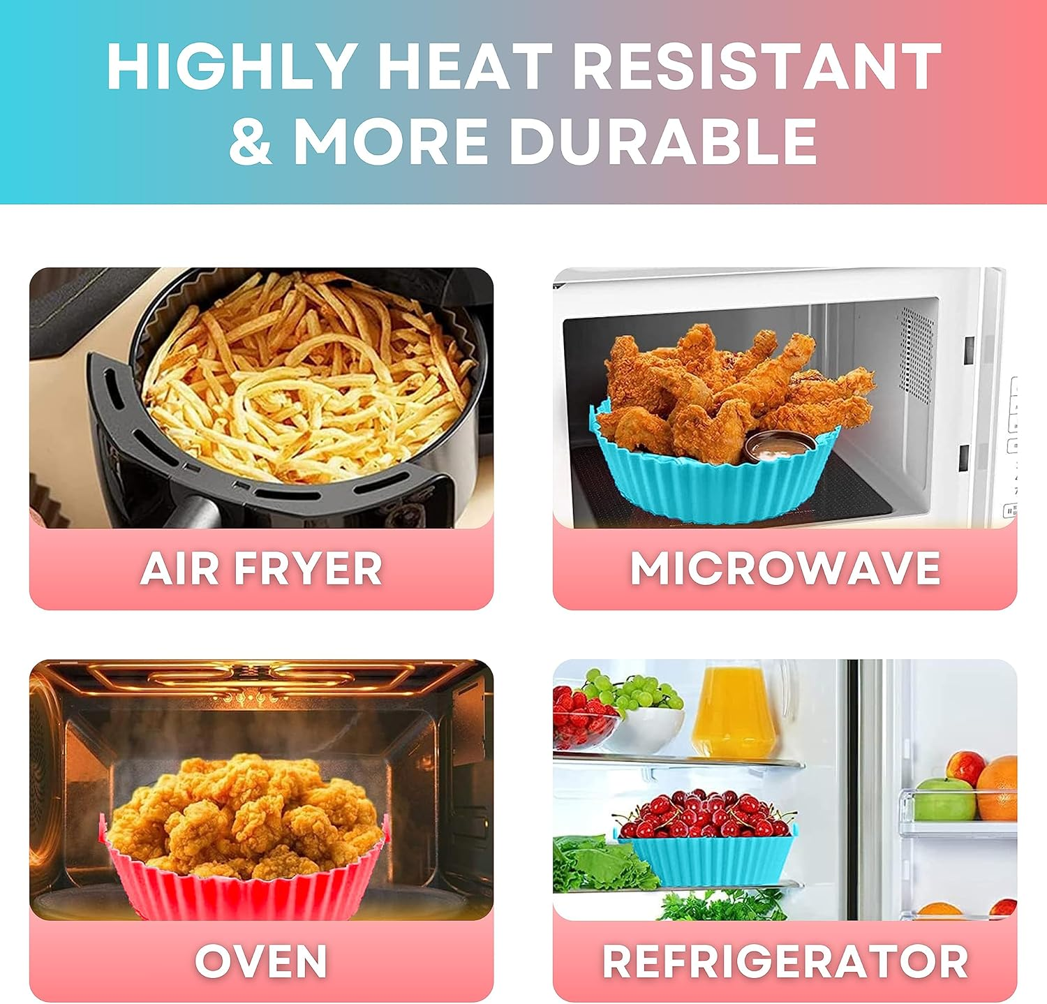 This reusable silicone air fryer liner is designed to fit most air fryers and is ideal for baking, frying, or roasting food without sticking or creating mess. Made from premium silicone, these liners are heat-resistant, eco-friendly, and suitable for use in ovens, microwaves, dishwashers, freezers, and even on stovetops. Easy to clean, durable, and perfect for healthy oil-free cooking.